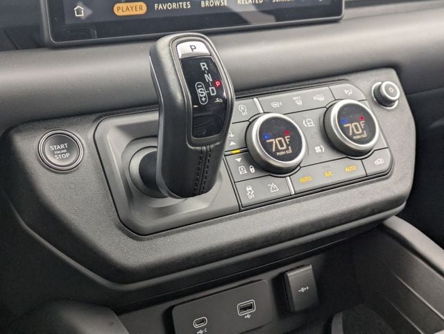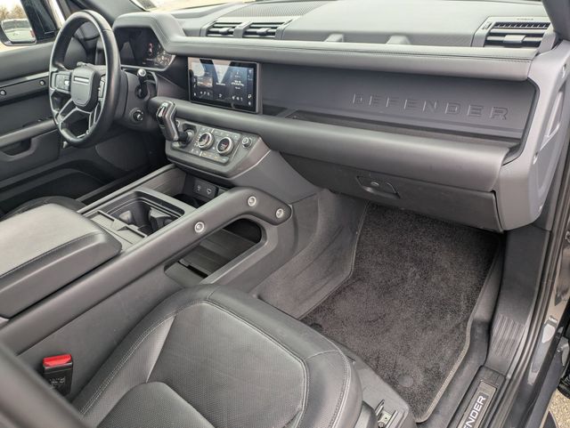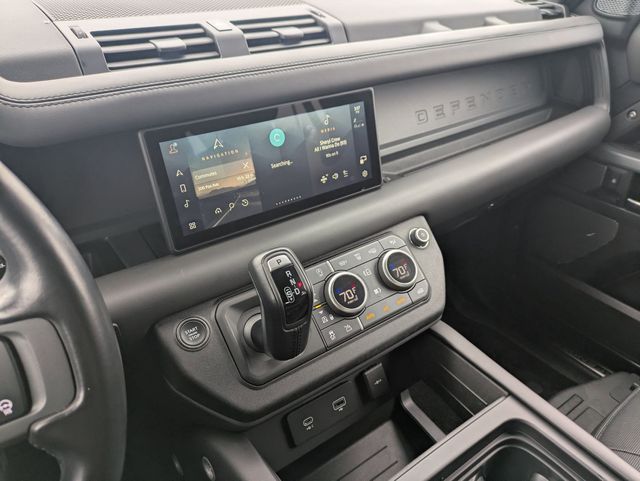 Designed to provide exceptional comfort and convenience, this Defender features a host of premium amenities, including a 700W 15-speaker Meridian Surround Sound System, 12-way heated and cooled electric memory seats, and a panoramic sunroof. The advanced technology suite, including Connected Navigation PIVI Pro, Apple CarPlay, and Android Auto, ensures you stay connected and informed on every journey.
